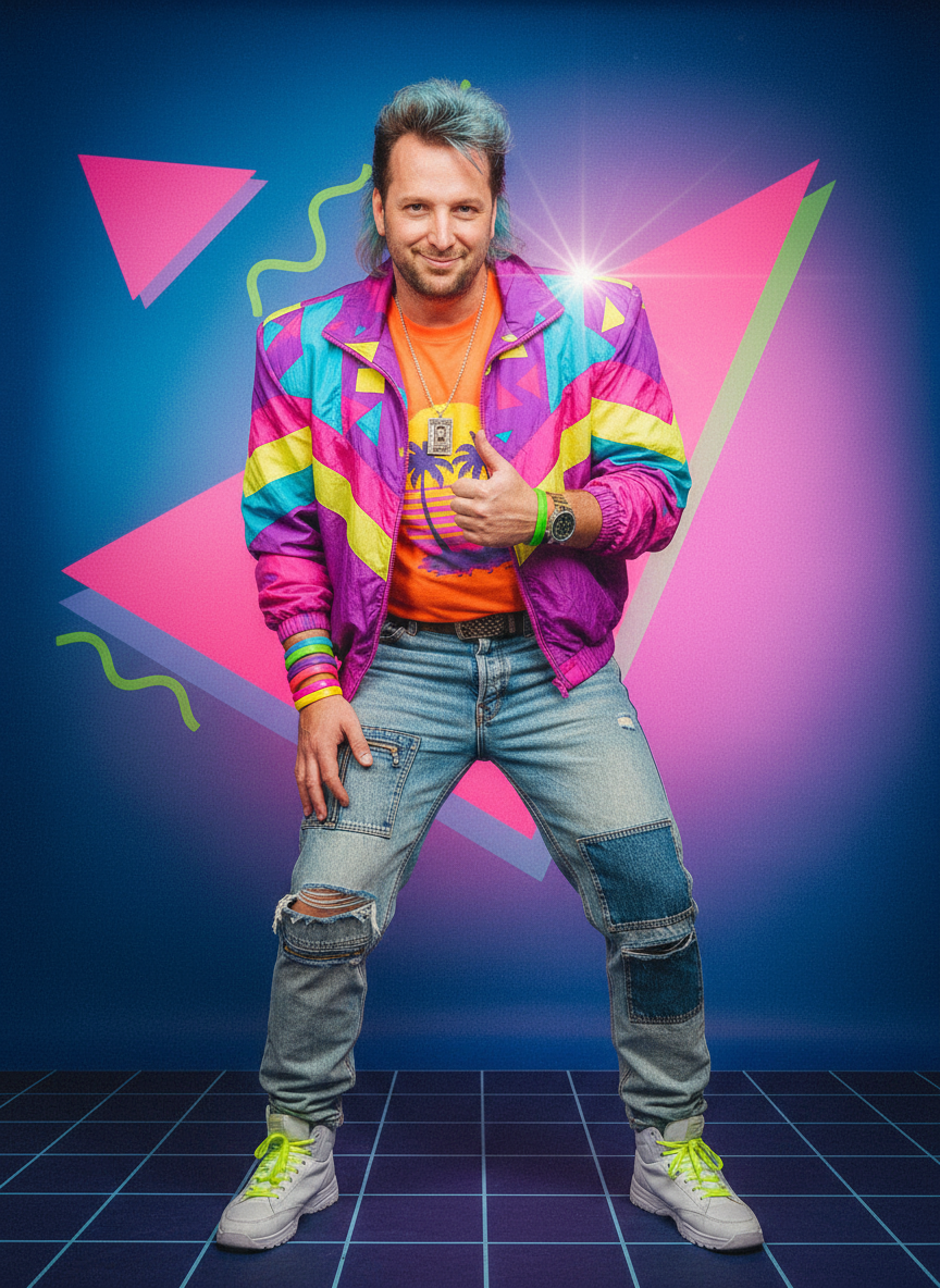 Make this guy dance hip-hop and make a split with 80’s music