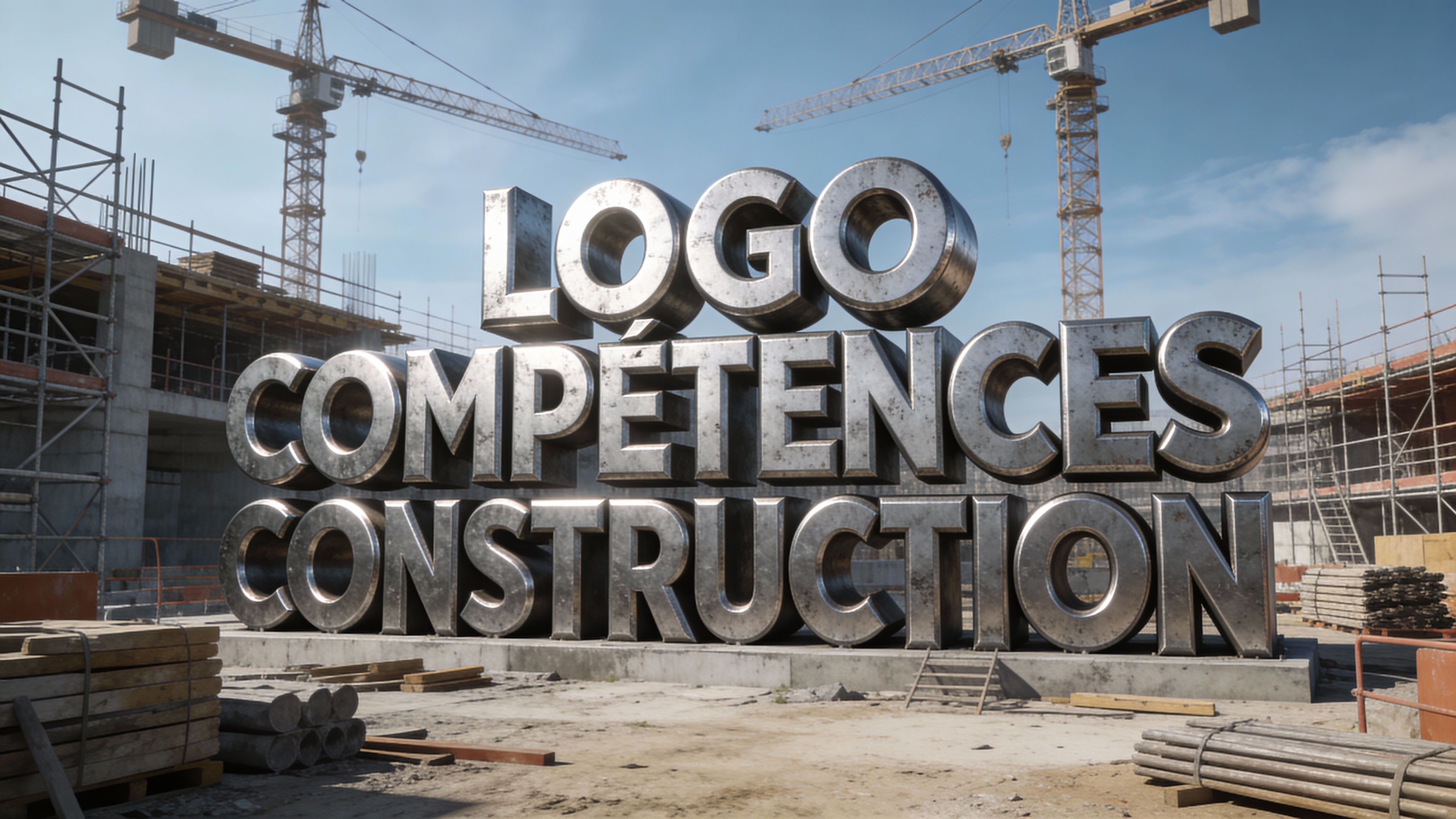LOGO COMPÉTENCES CONSTRUCTION en lettrage en 3 dimensions géant sur un chantier de construction