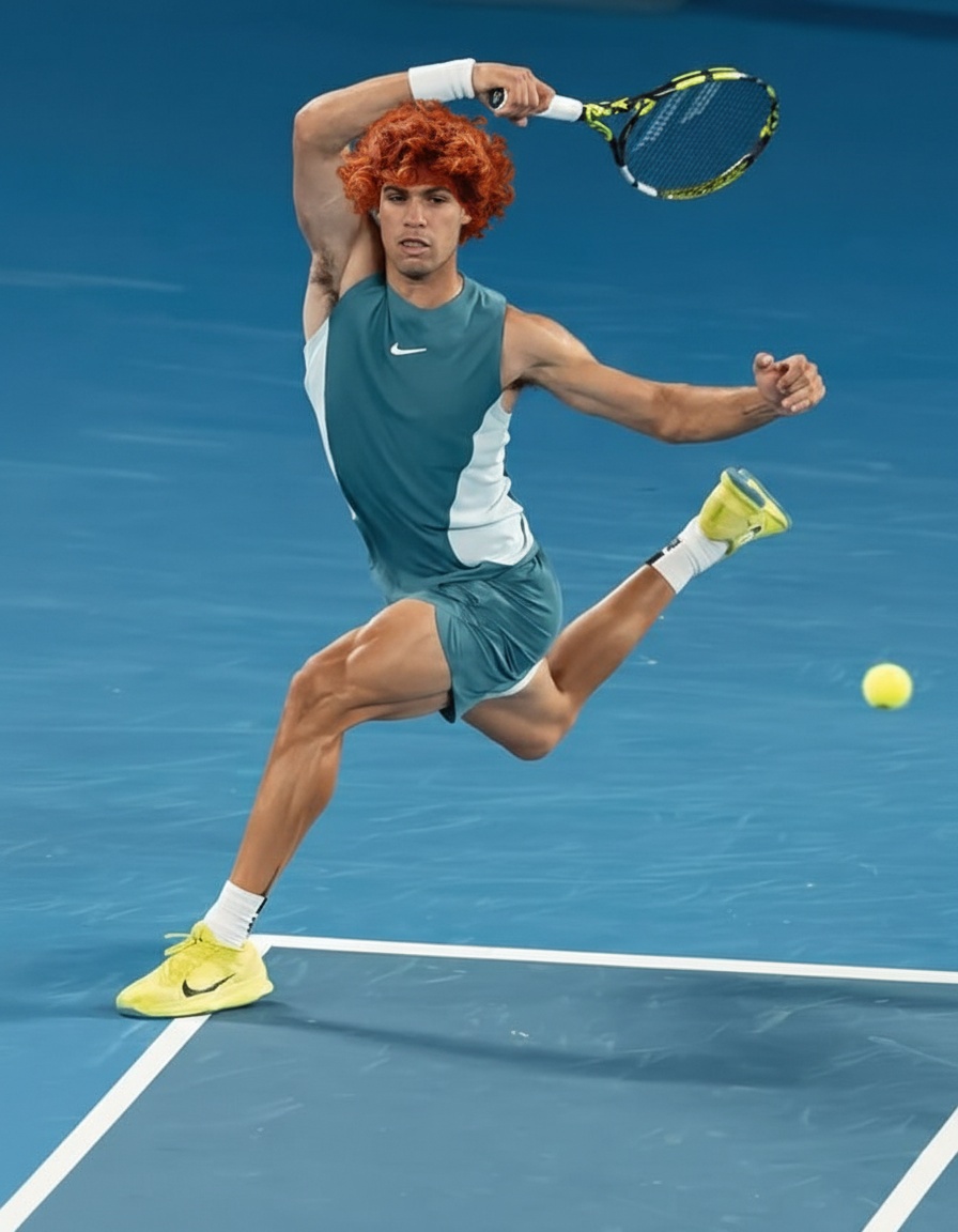 Put the red curly hairs of sinner on alcaraz.